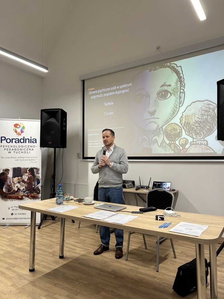 W dniu 7 października 2025 roku w Powiatowym Centrum Pomocy Rodzinie w Tucholi odbyło się spotkanie w ramach sieci współpracy specjalistów szkolnych oraz nauczycieli wspomagających, organizowane przez Poradnię Psychologiczno-Pedagogiczną w Tucholi. Gościem szkolenia był Krzysztof Tokarski – psycholog, samorzecznik i autor strony facebook.com/zespolasperger, który od wielu lat wspiera środowiska edukacyjne i rodziny osób w spektrum autyzmu.